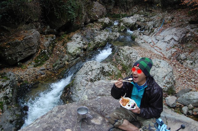 あ、妹ってのニュー自転車の事です。かなりかわゆい感じに進んでるカスタムが まさにVAN子の妹っぽいのです。近日公開予定、乞うご期待w あ~さて、昨日の土曜日。土曜日休みもお久しぶりね♪ってことで、 トレッキングに、こないだ誘った後輩君を引き連れて行ってきただよ。 場所は兵庫県、神戸市北区は道場にある、百丈岩と鎌倉峡です。 丁度、紅葉も真っ盛りでね、道中は176号線をゆったりツーリング出来ましたよ? 自宅を出て2時間ちょいで、JR道場駅に到着。 とりあえず、ここにVAN子を止めて出発です。 あ、ちなみに駐車場に黒VANVAN止まってましたw 以前は入り口が分からず、登らないで引き返したからな。 同じ失敗はできねぇ、と用心しながら登山口を捜しますが、 いまいちよく分かりませんw とりあえず標識が出ているので、たぶんこっちだろう~、とかいいながら 紅葉真っ盛りの林道を歩きながらまずは鎌倉峡に向います。 鎌倉峡は関西では珍しい、渓谷歩きが出来る場所。 渓谷沿い、じゃなくてほんとうに渓谷の岩場を歩けるので、気分は スーパーピットフォール、とファミコン世代にだけ分かるようなネタを小出しw 素直にスーパーマリオとか書かないのが毒男の毒男たる所以かと。 足を滑らすと、川にドボンな危険が危ない渓谷を進んでいると、 おばさん三人衆が前方で立ち往生してます。 どうやら道が分からないようで、道場駅に戻りたいそうです。 俺らがきた道なので、ここを進めば、戻れますYO!と優しさ全開の俺。 ただ、おばひゃン立ちの話しを聞くと、どうやら俺たちが通ってると思ってた道は 違っていたようですwww おばひゃン立ちに、僕たちはこのまま進みますんでじゃぁ、と言った手前、おばひゃン立ちの後を 続いて戻るのはどうにもばつが悪い、ということで、感じの良い岩場で少し早い昼飯にし、 オバひゃンたちが完全に戻りきるのを待つ作戦決行。 ランチタイム。 冷えたコロッケってなんでこんなに旨いんだろう?w 熱々の卵スープマジパネェす さぁて、そろそろ俺たちももどるっぺ、と鎌倉峡を後にします。 感じの良い竹林を抜けると、百丈河原に。 ここから百丈岩に登ります。 ちなみに百丈岩は切り立った岸壁が特徴的な山で、ロッククライミングなんかも 盛んなんですのよ。 名前の由来は、山頂に百畳ほどの畳がおけるほどの岩があるから、だとか。 生憎ロッククライミング装備も何も無いので、おとなしく登山コースで山頂を 目指します。 異常に急な岩場を鎖に捕まりながらなんとか山頂到着! どんなもんじゃい! 百丈岩とったどー! 強風が吹くと転落死しそうでしたw 遠景で。 まさに絶景でした さて、山頂も取ったし、そろそろ下山。 苔むした山道をとぼとぼ帰ります。 足元のもみじが色とりどりで綺麗でしたよ。 麓まで降りてきました。 寒い時期は虫もいなくて登るにはいい感じでした。 じゃぁのノシ ちわぁ~、ポマイラ元気ですかー!元気なら何でも出来る! ど~も、タフさだけが自慢のデカ○ン、太郎ですwノシ 前の日記で予告しておりましたが、15日、神戸は深江浜のアスコフットサルパークにて ウルトラスーパービギナーズの大会に参戦してきました。 参加チームは12チーム。 3チームの4グループに分かれて予選の後、 それぞれ1~4位決定、5~8位決定、9~最下位決定戦のトーナメントに進む具合でヤンす。 それでは当日の様子などをキャプ点でもある俺視点で進めていきましょう。 つーか、細かい内容は結構忘れているので適当な感じでw 我等がグループBはKANKERI_B と FCJつくし との3チーム総当りでした。 第一試合、KANKERI_BがFCJつくしに5対2で敗れた結果を受けての第2試合。 VanVan'S対KANKERI_Bです。 ここは絶対に勝ち点3が欲しいところ。 俺は前半に出場していたが、ガチな公式戦に足が言う事を聞かず、かなり残念な プレー内容でしたが、ジュンジュンがフィジカルを生かした豪快なミドルシュートで先制。 あとは必死のディフェンスで少しは貢献し、そのまま前半終了でお役ご免。 後半は一点返されたが、終了間際、エース倉の右からのファインゴールで劇的な決勝点で 2対1.第一試合を物にします。 そしてお互い勝ち点3で迎えたFCJつくしとの第二試合。 こちらが得失点で負けているので、引き分けでは優勝が無くなります。 絶対に負けられない戦いがそこにある、マジで。 またもや前半に出場の俺はとんちんかんなプレーを連発している間にあれやこれやと2失点orz あとは頼む、と俺は後半戦に望みを託したが、生憎反撃もままならず。 そのまま2対0で破れ、試合終了。 5~8位決定トーナメントに廻る事に。 さて、トーナメント一回戦の相手はRKB5. 優勝も無くなりみんなプレッシャーから解放されたのか、ボールも廻るようになったような なってないような。 後半にジュンジュンが右からのシュートを冷静に沈めて1対0でモノにします。 俺のプレーはまぁ、残念な感じでw 勝った事で、5~6位決定戦へ。 予選グループで当たったKANKERIのAチームとここで対戦。 弟
