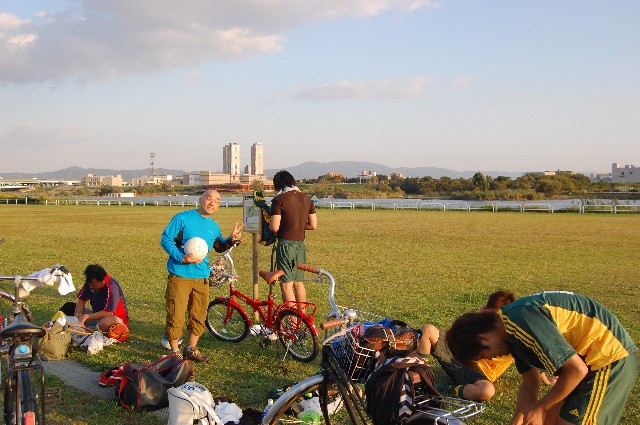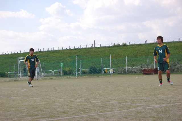 かぎ掛けて無かった俺も悪いけどさ、ガレージの奥に置いてるのを わざわざ入り込んで盗ってくか、普通?腹立つー!! ということで、無いとなにかと不便なんで新しい自転車を大日のりんりんで買いました。 6段変速が嬉しいジプシィーって折りたたみ自転車。 イタリアンレッドのカラーリングがなんだかとっても可愛いのです。 フロントには藤カゴ付けて、サドルは花柄なんかどうじゃろうか?と 乙女仕様カスタムを企んでおりますよ、ええw 凄く可愛い感じになると思うので、カスタム終わったらアップしますw あ~さてさて。 今日は一日中フットサルな日でしたな。 朝の10時~13時まで鳥飼でヘルベチカさん、ともう1チームと試合でした。 俺は新調した自転車をこぎこぎ現地に向います。 試合の方は相手のレベルも同じくらいで、とっても充実したないようだったかな? 俺も久し振りに点取れたしね。 ただ、5分経過すると嘔吐しそうになるという生理現象に悩まされておりましてw 出場時間が短かったのは今後の課題かもねぇ。 左ジュンジュン、右トク 手前カズ 左クラ、右トク 戦況を見つめるタロー 河童、五右衛門は写ってないな サーセンw その後は、王将でお食事。餃子とビール。 汗をたっぷり流した後、餃子をビールで流し込むのは正しい大人のすることだと思うんですよね。 さて、帰るか、と思ってたら今度は練習しましょう!というどんだけ~!な意見が 上がったので俺は、3時間も試合した後なのに全く蹴球ジャンキーどもが、、、とニタニタしながら おっ!いいねぇ!よっしゃ一丁やったるか! ほな、そこの河川公園の芝生広場に集合や! とキャプテン翼ばりの統率力を垣間見せる。 結局、2時から5時の閉門までボールと戯れました。 少し冷たさを帯びてきた風が汗ばんだ肌にマッチングしてて とっても気持ちのよい一日だったね、うん。 全員、非カメラ目線糞ワロタw