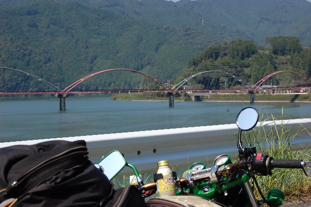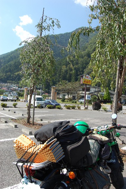 今日はそのレポートでも綴っておこうかしらん。 いつものように早朝、4時出発。 夜も明けきらぬR1を京都まで走り、京磁BPで京都市内をワープ。 そのまま新名神にチェンジする筈が間違って名神の方へw しょうがないので竜王で一度降り、R477経由で1号へ。 亀山ICで伊勢湾岸自動車道で名古屋をワープしいつものように豊明で降りて23~1号。 9時には静岡の入り口、道の駅、潮見坂到着。 そろそろ10月と言うのに暑すぎ。着ていたダウンジャケットを放り投げるように バッグに仕舞い、浜松から天竜方面へ。R152. 丁度、天竜川が見えてきた辺りで休憩。 さぁ、いよいよ山の中だ。 R152.天竜川の河川敷にて 天竜川に沿って152号を北進。 ずぅっと面白くも無い高速、国道を走ってきたので、軽めのカーブがいい気持ち。 山の中の橋って、なんでほとんどが赤いんだろ? 天竜を越え、水窪辺りに入ると、秘境度が急激に上がってくるw 天竜スーパー林道は華麗にスルー。 R152は、青崩峠が通行不可なので、ヒョー越林道で\峠の向こう側へ。 眼前に南アルプスがババーンと飛び込んできておれは思わず、ヒョー!凄げぇ~なんて 吼えてみたり。 人の気配が全くしないヒョー越峠を越えると、長野県IN。 日本の中でもひっそり度では白眉の遠山郷が目の前に見えてくる。 山間にひっそりと軒を並べる民家、せせらぎの清流もどこかしら、ひっそりとした流れ方。 郷に入れば郷に従え、か、、、、と俺は思わず右手をそっと戻し、ひっそりと通過したんだよね。 そうえいば、朝からおにぎり2つ食べただけだったな、、、、とお腹のサイレンに気づいた俺は 道の駅、遠山郷にて昼食。時間は12時30分。 やばい、目的地はもう目の前なのに早く着きすぎるw 遠山名物、という遠山ジンギスカン丼@¥900を腹に収めた俺は ふぃ~、と爪楊枝で歯と歯の間に挟まったマトンを取り除きつつ、足湯でまったり。 その勢いで、すぐそばのスーパーへ。 今夜の食材を調達し、あとはキャンプ場へ向うだけだ。 道の駅「遠山郷」 R152から、上村の辺りで、東に進路をとり、山の中へ。 今回の目的の一つ、日本のチロルこと「下栗の里」に向う。 くねくねっとした山道を駆け上る事数十分。 ぽつぽつと斜面に集落が見えてくる。 下栗の里だ。 あぁ、ちなみに下栗の里ってのはあれだ。 急な斜面に民家が寄り添うようにして連なってる集落なんです。 昔、どこかの誰かが、日本でこれほど平和で美しい村を私は見たことが無い、とまで 言ったと伝えられています。 看板には神々の住む里、なんて書かれてあり、なんとも雰囲気たっぷり。 急斜面なんで、いい写真は撮れなかったorz ストトトトッと下栗を出た後は、本日の宿営地、しらびそ高原に向います。 標高2000Mクラスではバン子もさすがに息切れ気味。 これ、紅葉の時期なら最高な道だな、と呟きながらしらびそ高原エコーラインを 走り、しらびそ高原山岳キャンプ場に到着。 午後2時前w 事前に予約を入れておいたので、ハイランドしらびそのロッジで受付を済ませ、 「今晩は太郎様だけになりますので、お好きな場所をどーぞ」って また一人のパターンかよwと苦笑しながらは~いとロッジを出て、バイクで1分のキャンプ場へ。 しらびそ高原山岳キャンプ場を独り占めw ちなみにここ、しらびそ高原山岳キャンプ場は、日本最高峰に位置するキャンプ場なんですって。 展望は抜群で、目の前に南アルプスの山々が惜しげもなく姿を見せてくれます。 うひょ~、今晩はここを貸しきりか、、、、、、、、嬉し、、いや怖いなwww 熊とか大丈夫?来る時散々熊出没注意の看板みたんですが、、、と不安になりつつも、 設営を済ませ、ロッジが6時で閉まるので、風呂は6時までに、と言われていたが、 いかんせんまだ時間は3時。まだ風呂は早いだろ、、、、ってことで、 近くのしらびそ峠に向います。 あ、ちなみにしらびそってのは針葉樹で、この辺りは昔、しらびそで覆われていたから、 ってのが名前の由来だそうです。 バイクで行くことが出来る峠の中でも、その絶景ランキング2位(一位は北海道・美幌峠らすぃ) を誇る、峠からの眺めは圧巻の一言です。 ただ、ちょっと雲が掛かってて、ぶっちゃけイマイチだったのは内緒だwww しらびそ峠にて@太郎&バン子 しらびそ峠、とったどー!!などと叫びながら再びキャンプ場へ。 さて、風呂でもはいるっぺ、とハイランドしらびそ内の展望風呂@¥200に 浸かり(ここでも貸切w)、たっぷり一時間ほど湯浴みしてから再びキャンプ場へ。 夕食にはまだ早いしなぁ、、、と俺は途中で買っておいた雑誌を読み耽りながら お腹が空くまで待ったんだよねぇ。 至福の時間だった気がする 辺りが少し暗くなりだし、夕暮れの雰囲気になってきたころ、 夕食の準備に取り掛かります。 今夜は地のものを、ってことで遠山ジンギスカンであります! どうでもいいけど、名物の割りに、パッケージに 「オセアニアの風土に育まれた、、、」とか書いてあるんですがw 思いっきりオージーです