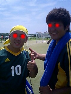 先日の日曜日はアレだ、久し振りにフットサルの試合だったんだ。 なんせ、最後の集いは、練習やるっつって、BBQして解散だったからなw 体が動くか心配でしたが、昨夜30分自主トレ下から大丈夫だろう。 場所は鳥飼。 青空の下、気持ちよくプレー出来ました、といいたいところだけども、 とんでもないw。 生憎の真夏日で、風も吹いてないもんだから、やばいのです。 フットサルは基本的に7分なんだけれども、7分がこんなに長く感じたことも無いですなw ふらふらになりながら、ワンセット終わり、水を浴びまくりジュースを飲みまくり、再び死の7分間。 そんなんを三時間みっちりやったもんですから、貴方、一日で凄い日焼け顔になっちまってね。 まぁでもあれだ、夏に日焼けしてない男は駄目だと俺は思うのです。 帰宅後のビールが旨いんだよな~とか書きたいところですが、 プレー中、水分の取りすぎで、お腹がタプンタプンしてて、あんまり 帰宅後のビールが美味しくなかったのは今後の課題なんだw これにこりずに皆様、近いうちにまたやりましょうw プレー風景。 和製チラベルトことキム兄と 和製イエロことジュンジュン 和製ルーニーこと太郎坊と 和製スコールズこと幸太君