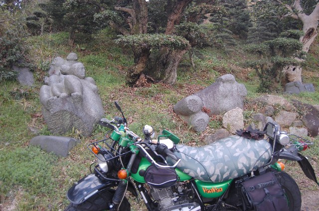 あまりにもこのバイクを好きになってしまったこと。 別れは辛いものだからね。 皆シャンこんバンバン、バンバン愛を囁き続けて早8年目。 バンバン界の生き地響きこと太郎坊でやんすノシ 土曜日の話。 昼下がりの午後2時過ぎ。 時間が空いたので、ちょっくら流すかぁ~とバン子と路上へ。 豊中にいたころはこういうとき、決まって北摂方面へ出かけたもんだけど。 こっちでもそういうルートを開拓したいな~、と2時間くらいで戻ってこれるルートは ないじゃろうか?と中央環状を南下しまする。 大阪でのどかなところ、、、、、、 う~んう~んと悩みながら美原まで下りて来たところで、行き先を 河内長野の千早赤坂村に決定。大阪府で唯一となった村。 楠正成ゆかりの地。 村のコピーは「一冊の絵本のような村」。 日本昔話の、「昔々あるところにおじいさんとおばあさんが住んでいました。。。」って ナレーションのバックの画像のような風景にうっとりしながら、 道の駅「千早赤阪」でコーシー休憩。 つーか寒すぎるんですけどw ふと東を見ると葛城山が冠雪してるよおい。寒いわけだ。 忍者250が入ってきたのとすれ違いで出発し、 帰りは南河内グリーンロードで帰る事に。 いかんせん、天気が悪いのと寒いのとで快走気分にはならない微妙な感じ。 目玉の展望台はカップルが愛を語らってる雰囲気だったので、スルーして、なんかよくわからんところで 立ち止まる。 景色も天気も微妙すぎワロタw ふと道端を見ると、石造群が無造作に転がってた。首無しで怖いしw 女性石像の乳房に劣情を催した俺は帰路を急ぐ。ねーよw グリーンロードを走りきり、聖徳太子ゆかりの道の駅で用を足した後、 間違えて柏原方面に行き、藤井寺あたりをふらふら。 この辺、ほとんどこないんで土地勘が。。。 なんとか中央環状へ復帰し、そのままパイ~ンと自宅へ。 午後5時過ぎ、到着。3時間ちょいくらいか。 俺のチョイ乗リストにまた一つ、コースが加わったのはいいことだと思うんですよ。 |