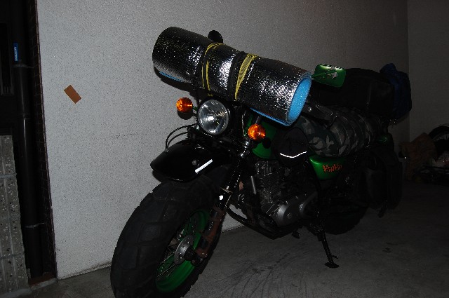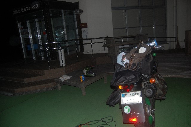 連休が出来たので、今回は以前から訪れたいと思っていた、福井県は越前の一乗谷を目指したんよ。 バン子に荷物を積み込んで、7時30分、家を出発。 毎度お馴染み周山街道で琵琶湖の北へ抜け、敦賀の手前でちょっと早い昼飯TIME. 27号から8号で敦賀を抜けたところで休憩。 春の海か。潮風が気持ちいいね。 敦賀・若狭湾 いいペースやな~と8号で海岸を北上してると、工事中で片側通行の足止め。 ちょっと一息やな、とバン子を止め待つ。 5分、10分、15分www おいおい、何分またせんだよ!と怒りがぐつぐつ煮えたぎり待つこと20数分。 やっと車列が動き出しました。 海岸線から県道207号で山の中へ。 この県道207は今回走った中では一番楽しかったな~。 もともとは旧北陸線が走ってた道でね。ところどころにその名残を残しており、 列車が走ってたトンネル内なんてあなた、雰囲気満点でしたぜ。 ここは鉄っちゃんの要素を内包するライダーなら絶対に走ってほしい道ですね。 県道207から365号~476号と繋ぐ。 くねくね快走路の476号から県道2号で158号へ。午後2時、一乗谷は朝倉氏遺跡到着。 一乗谷ってなんじゃらほい?ってかたもいると思うので、簡単に説明。 時は永禄ほにゃらら年。織田信長の時代ね。 信長と敵対してた越前の雄、朝倉義影が当時、本拠地にしてたのがここ、一乗谷と呼ばれる 城下町やったんよ。周りをぐるりと山に囲まれた谷には、小京都と呼ばれた町並みが広がっててねぇ。 武よりは政治・文化に関心の高かった朝倉氏らしく、京都の文化をふんだんに取り入れており、 信長によって、壊滅されるまではそうとうな栄華を誇ってたんですよぅ。 結局、最後は信長の侵攻を許し、町全体が焼き払われ、小京都とまで呼ばれた町並みは 一夜にして塵と消えたってわけ。。。。 ここは当時焼き払われて400年以上眠ってた一乗谷の遺跡なんですよ。町並みなんかも復元されてて、 歴史FANなら必見の場所なんです、はい。 ちょっと小腹も空いていたので、飯を食う。 感想は、なんだかねぇ、、、、信長苛烈すぎね?って感じかな。 そこまでせんでも、みたいなね。 一乗谷見学の後は、今宵の宿、緑と自然の村太陽広場を目指します。 ここで、俺はまちがえて20キロくらい離れた福井市方面に行ってしまい大幅な時間ロス。 なんやかんやで、午後5時、キャンプ場到着。 今回の宿、太陽広場は料金¥100、風呂に入るなら追加で¥250と非常にリーズナブルな 旅人の懐にやさしいキャンプ場なのですよ。 受付のおばひゃんも優しくて、是非お勧めです! えっさほいさと今年初のテント設営後、ひとっ風呂あびてから、 武生市街まで出て、王将で王将ランチ。 コンビニでおやつを買い、本屋で夜の暇つぶし用に雑誌を買い、テントに戻ると時間はもう7時過ぎ。 テント内でだらだら過ごし、午後9時前には眠りについたZZZZZZZ あ、ちなみに利用客は俺一人www怖いんすけど。 夜中の12時に、近くの峠にドリフト練習しに来てる馬鹿に目を覚まされたけど、それ以外は極めて快眠。 テントを叩く雨音で午前5時、起床。 雨か。 まぁ分かってた事だし、しゃぁないか~。 速攻で撤収し作業完了! キャンプ場 屋根があって助かります 合羽を着込んで、ふりしきる雨の中帰路に着く。 帰路は8号~27~162と繋ぐ。 小浜のコンビニで。 雨と風との格闘でだいぶんやられてますw 昼の12時前には帰宅。 二日目の天気はいや~んでしたが、やっぱバンバンとの旅路は止められませんYO!
