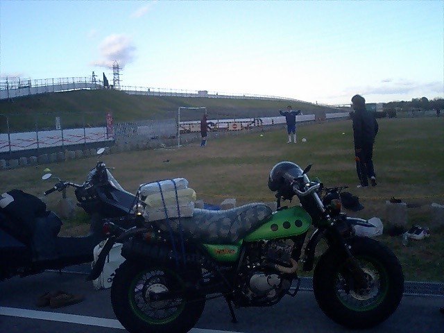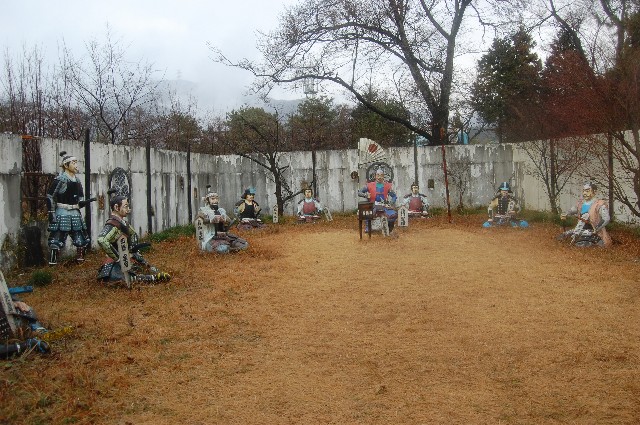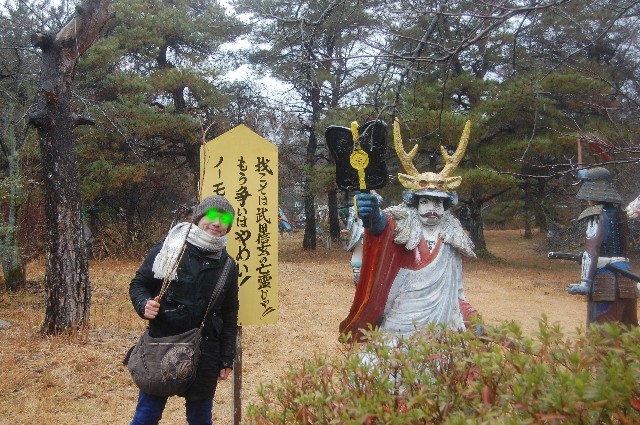 あ~さてさて。 昨日でお仕事は締めだったので、今日から来年の4日まで9日間の正月休みに突入です。 ヒャッホウ! バイク馬鹿なもんで、休みに入った初日から早くもツーリングですw 行き先は琵琶湖界隈であんまり予定も立てずに出発。とりあえずわかさぎの天麩羅でもくいてぇなぁ。。。 ぐらいなもんすw 行く時に冬用の厚手のグローブ+極薄のインナー手袋の組み合わせでいったんだけど、 途中の信号待ちで、指の収まりが悪かったんで、厚手のほうを脱ごうとしたら、中身が裏返ってしまい、 どうにもこうにも指が入らなくなるwしかも二つともw まぁ今日はそんなに寒くないし、日も昇ってきたら暖かくなるっぺよ?と琵琶湖近辺の気候を完全に 舐めてます俺w後にフルボッコに遭おうとはこの時は知る由もないのであった。。。。 豊中ICで大津ICまで名神高速でワープ。大津で雪舞っててワロタw 大津から瀬田西で降りて、唐津橋を横目に北上開始。 ここで初めて忍者250の実車に遭遇。エッジが効いてて格好ええ。エッジは65といったところかw 琵琶湖沿いを通るさざなみ街道へ。 さざなみ街道は最高のツーリングルートなんだけれども、生憎の曇り空と寒風とでガクブル状態w あかん、辛抱たまらんっ!と、琵琶湖沿いを通るさざなみ街道の途中で、コンビニへ。 ここでグローブとおやつ調達。 どんよりした曇り空のもと、一路、湖北の水鳥ステーションを目指します。 途中のパーキングで震えながらおやつをもぐもぐ。 こういうのは嫌いじゃナインよ。 対岸では琵琶湖バレースキー場が冠雪してましたわ。 琵琶レイクでほのぼのレイクw ふぃ~食ったっぺよ?と唐揚げとさくさくコロッケを胃に仕舞いこんでさらに進む。 野洲~近江~彦根。 野洲といえば最近、サッカー日本代表候補に入った乾の出身校です、と豆知識。 乾のドリブルは一見の価値有りです。 近江八幡のあたりで雨がポツポツ。合羽装着。 冬の雨か、、、、、えぐいな。 外は冬の雨まだ振りやまず。。。。とおとんがよく謳ってたさざんかの宿を口ずさみながら 苦虫を潰したような顔で北へ北へ。 なんとか水鳥ステーション到着~。 底冷えする体に暖かいものを!ということで天麩羅をあっさりやめて、 笑福ってラーメン屋で鳥野菜ラーメンなるものを食す。バリウマ。 道の駅に併設するこのラーメン屋は初めてだったんだけど、店内には所狭しと訪れたライダーの写真が 一面に張られてある。若いオーナーも相当なバイク好き。 小さな子供が「沢山バイクの写真がある~」ってのを「みんなええ顔してるやろ?」と 嬉しそうに返してたのがいいね。 ラーメンの方も鶏がらの出汁が効いてて、むっちゃ美味しかったので、ここはお勧めポイントですYO! ラーメン屋を出ると、雨はいよいよ本降り。 合羽を着ながら、どうする?と同行のS夫に聞くと、「任す」と。 俺は鼻くそを穿りながら熟考。 普通はこのまま奥琵琶湖から琵琶湖の西側を走り、メタセコイヤの並木道で愛車の写真を撮ったり、 風車村でオランダを疑似体験したり、白髭神社で想い人の祈願をしたりしながら一周するのがセオリーだろう。 が、雨に打たれすぎてライダーズハイな状態の俺にそんな常識は通用しない。 あそこやな。 以前から一度訪れて見たかった某所を目指すべく、8号から365号で伊吹山方面へ。 関が原ウォーランド。 天下分け目の合戦、関が原の戦場を忠実に再現したパークが関が原町にあると知ったのは いつだったろう? アレ以来、いつかいこうと思いつつも、生憎あんまり散策しない地域ゆえ実現しなかったんよ。 振ったり止んだりを繰り返す雨はまるで羽毛の心地。ねーよw 靴下の中のドジョウの数が10匹を越えるころ、ウォーランド到着w よーしパパ、戦国にちなんだ土産物買っちゃうぞー!と思ってたんだけど、お土産屋さんは 既に閉まってたw早っwまだ2時過ぎよ? ¥700を払いいざウォーランドへ。 だだっ広い場内のそこかしこに人形さんたちがいて、合戦の最中でした。 真面目にやる気があるのかないのか分からないB級スポットですが、 二人とも大の歴史好きやったんで、人形を見るたびに「おぉ!可児才蔵キター!」だの 大谷萌えー!だの、左近・・・・、鬼島津キタコレだのと狂喜乱舞。 歴史FANならまぁまぁ楽しめるスポットでしたよ。 信玄さんと 関が原の頃にはもうあの世にいってらしたので、亡霊ですw 一番好きな戦国大名、大谷吉継さんと 重病を患っていたが、親友三成の為に、参戦。 裏切り、傍観の多かった西軍の中で数少ない奮戦した一人。 治部小こと三成さんの陣地。 合戦後、居城佐和山城を東軍が陥落した際、 城中は質素でほとんど資財を蓄えておらず、全てを豊臣家に 捧げた彼に対し、攻め込んだ東軍の武将は思わず襟を正したという。 場内の人形の配置は、当時の布陣図と同じらしい。 家康の陣地 名だたる名将が勢ぞろい。 黒田長政とかいいよね。 ちなみに、小雨振る中のパーク探索でした。 ふぃ~と歩きつかれた俺達一行は、隣接していた