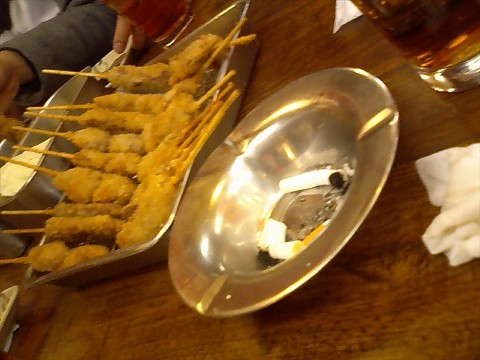 最近なんやかんやで更新する気が失せていたので、今日はまとめていっちゃいます。 まずは先週の日曜日のお話。 午後から、大食い自慢の野郎共となにわのじゃんじゃん横丁に串カツを食いに行ってきました。 あんまり、というかほとんどこの地域は出没しないので、集合場所の通天閣が分かりませんw 空気を読まずに一人バン子で出撃したため、まずはバイクを止める所をさがさねば、、、、 って感じで難波周辺をうろうろ。 なんとかビッグカメラの駐車場に収めました。 丁度お昼時だったんで、早速、キム兄ご用達の串カツ屋にレッツゴーですよ? 道中、所々にビリケンはんがいてはったんで記念撮影に大忙しでしたw 串カツですが、さすがに本場もんはんまいですね~。 野郎だけで豪快にがっつくのがいいんだよなw お皿の上がどんどん無くなっていくので、大忙しで腹に詰め込みますw バナナとかイチゴとかの若干キワモノじみたものまでありましたw頼んでねーけど。 個人的にはやっぱり普通の串カツが一番かな~? 串カツ~ ふぃ~食った食った♪ 腹を満たした後は、近くの天王寺動物園に向かいます。 男6人でwww ちなみにここは¥500ととっても庶民的な値段なのでお勧めです。 コアラがやっぱり一番の見所なんでしょうねぇ、とフラグを立てておくw らくだ と たろ~ 園内からは丁度通天閣が見えマッスル とりあえず全部廻りつつ動物達の可愛らしいしぐさにうっとり。 ペンギンの愛嬌のある歩き方や、レッサーパンダの尻尾は十分「萌え」ですが何か?www 閉園まじかに大急ぎでコアラ館に行くと既に閉館。 どうみても、本命を見逃してます本当にry 丁度日も沈んできたので、通天閣にも登ります。 感想は、、、なんだかよくわからんが凄く大阪だなと思いましたw 足撫でておいたので、来年こそはいいことあるはずw とりあえず、じゃんじゃん横丁の串カツは☆三つ!ってことで、ほなさいならノシ いや~今年もあと一ヶ月切りましたが、皆シャンお元気でせうか?