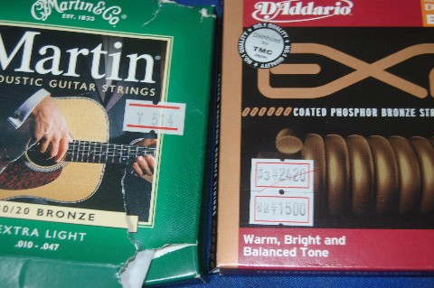 いや~まいったまいった。 今日は夜、昨日買った弦を張り替えてやりまひょ?と自身3度目の弦張替えをやったったんです。 つか、2年間で3回とか駄目でしょ俺。 いつもはマーティンの¥500位の安物を使ってるんですが、今回は定価2500ダラーの 本物志向の貴方へ的な一品です。 余り弦の違いとか良く分からないので、元3○○○○のたっ○んにアドバイスを求めると、 「やっぱいい音鳴るんちゃいます?」というテケトーぶりにバロスw 弦交換は過去に2度ほどやってるとはいえ、ほとんど張り替え方を忘れていまして。 教習本に乗ってた通りにやったんです。 で、とりあえず張り替え終わったんで、チューニングや~と、颯爽と懐から 取り出したるは、某○のっちから貰ったチューナー君です。 どうみても未練たらたら羽賀健二です本当に(ry で、最初の一弦がなかなか合わなくて、力任せに弦を伸ばしてたら「ぷっち~ン」と切れやがったんです。 ひぃ~!一本400もする弦がぁ~!と憤懣やるかたなしの俺。 切れたもんはしょうがない、、、と買い置きしてたマーティンの安物弦で代用。 ちなみに、6弦までで合計3本ぶち切りましたwww なんかチューナーおかしいんかな? で、結局、6本中、半分だけええやつで、あとの3本は安物、という訳の分からん状態にw イマイチ分からん、、、というバイクオタクな皆さんに分かりやすく言うと、 完全合成のエンジンオイルを入れたら、半分こぼしちゃって、しょうがないから 鉱物油を半分継ぎ足した、と表現したら、俺の無念さを理解してくれるだらうか? でもやっぱあれやね、新品の弦はいい音なるねv(^^)v バイクもそうだけど、モノって自分で整備しだすと愛着もどんどん沸きますなぁ。 右がオニューの弦っす しんぴーん! うぃ~す、海外ドラマなら間違いなく「ア~ノルド坊やは人気者」が好きな、