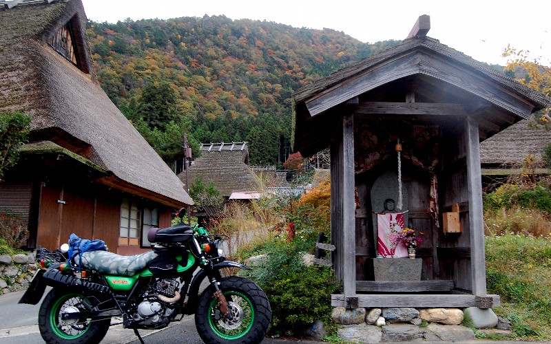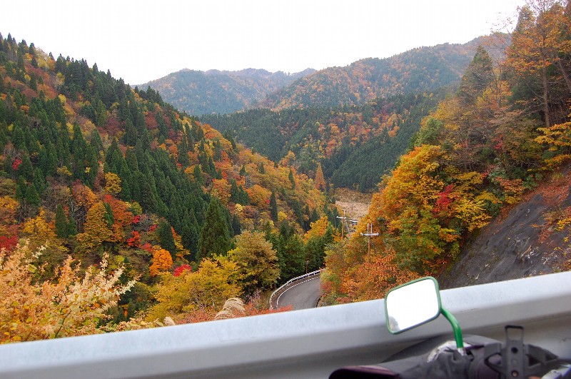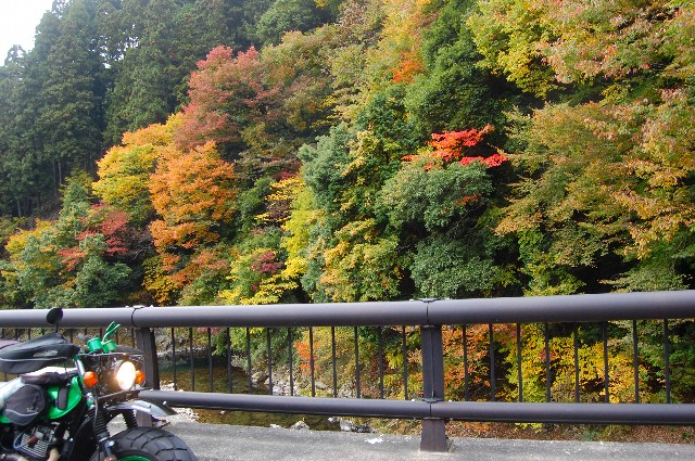 さて10月9日、日曜日の話。 午前中はひたすら現在の練習曲、スピッツの「空も飛べるはず」を弾きまくってました。 で正午前、たまにはソロツーでもいくっぺ?と バン子にハンドルカバーを装着して出発進行でありんす。 行き先はどこにしようか?この季節ならどう考えても紅葉しかないだろ常考、と思った俺は 曽爾高原か、またまた佐々里峠かの二択を迫られるわけ。 曽爾だと、163号か。ちとだるいな。 佐々里だと477号か。まぁいけるな。 ということで、何度走ってもおいしい477号をずんどこずんどこと北へ走ります。 うひぃ~さむいのぅ、、、と途中でコーシーを飲みまくり、尿意を催しまくり、で 477号から372号から府道73号。 京都府道73号は初めてだったけどいいねぇ。 ドライブデートに勤しむプルカツの軽自動車を鬼の形相でぶち抜きながら 73号から再び477号。 ソロツーライダーにピースを出しまくりながらスルーされまくりの俺涙目ワロタw 477号も162号との交差を抜けると途端に人の気配がしなくなる。 フヒヒヒヒ、ガソリン切れそうぜよ、、、、と焦りながら477号を鞍馬方面へひたかける。 おいおい悉くガススタしまっとるがな、、、と思いながら、花背のあたりで、ようやく ガソスタ発見!が、店員がいない、、、、 オロオロしてたら、隣の古ぼけた商店からおばあちゃんがのっそり登場。 ほいほいちょっとまっとりんしゃいといいつつこちらに来る。 田舎のガソスタではありがちな、隣の店も兼務ってスタイルですね、分かります。 ガソリンが入った途端、テンションも回復し、そのまま府道38号で関西屈指の 紅葉の名所、佐々里峠を楽しむ。 う~む、マンダム。 花背辺りで 佐々里峠山頂あたり 佐々里峠その2 紅葉を楽しみながらまったり佐々里峠を流してると前方から見慣れぬバイクが! スケベイス来たー!!初めてみたわぁ その後、前方からイエローのオフ車が 三角木馬キター!!きっついのぅ その後、前方から同じような排気音のロードバイクが! らっきょキター!!まっるいのぅ ふと、目の前に視線を戻すと! バン子キター!!かっわいいのぅ 汚染地域を抜け出した俺はwwwそのまま美山茅葺の里に寄り道。 う~む、俺は白川郷よりこじんまりしたこっちのが好きやなぁ^^ 観光客もまばらやしね。 なつっ!w 祠とバン子 美山の里から、締めは美山ふれあい広場の道の駅へ。 第一回バン☆オフの撮影大会した場所だよ♪ あの時のみんなは今も元気だろうか? 俺はまだあの時のバイクに乗って相変わらず訳分からないことやってます。 お土産屋さんで鯖寿司と美山ぎゅうにゅうをゲッツしたあとは、そのまま 162号を南下後、73号~372~477~173~176号で6時前には自宅へ。 さぁみんなもとっておきの紅葉を見にいこうよう!www 酢の具合が良くておいしゅう御座いました♪