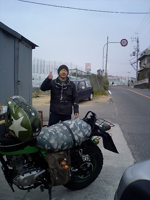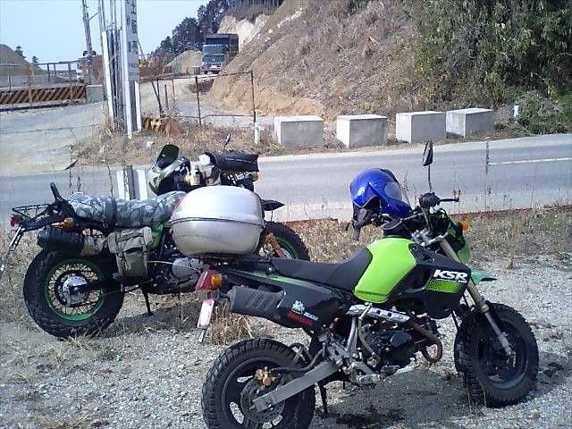 今日は大阪南部の南河内グリーンロードを走破しに緑色のオートバイ二台で行ってきましたわw 朝、早く起きすぎた俺は8時過ぎまで二度寝。 ハッとして起きるとお天道様はすっかり上機嫌。 う~んマンダム、と俺は鼻歌交じりで掃除&洗濯を終え、会社で依頼されてた幾つかの表作成に 勤しんでいた。昼前には終わらせ、予め電話しておいたKSR君に「完了。では内環状で。」と だけ言い、速攻でアルビレックスのジャケットとブーツに身を固め、バンバンのチェーンにエンジンオイルを 塗りたくって家を出る。 途中でKSR君と合流し、小春日和だねぇ、なんていいながら大阪府を南下。 あ、ちなみに南河内グリーンロードのことをちょっとだけ説明。 大阪府南部の南河内を基点に、太子町までくねくねと縦断してる総距離22キロくらいの広域農道なんです。 一時頃には基点の天見到着~。 分かりやすく「南河内グリーンロード→」の標識が出てるので、ほとんど道なりにいけばオッケー。 懐かしさを覚える田舎道と起伏に富んだくねくねロードと今年一番の陽気のせいで 実に気持ちよく流せました。こないだまでとんと見かけることの無かったツーリングライダーも ちらほらと。 小吹のあたりの工事現場跡地で初めて休憩。 い~天気♪ グリーンロードで。 スズキフェアウェイグリーンメタリックのバンバンと 川崎ライムグリーンのケイエスアール。 休憩後、千早赤坂経由でr27~r200と繋いで再びグリーンロード。 この道、ずぅ~と続いてるわけじゃなくて、途中で県道を跨ぎ分断されてるんです。 このr200から入るさくら坂~太子の区間が一番良かった。 ビニールハウスや牧場の中を突っ切る文字通りの道。 うちも農家やったんでビニールハウス特有の匂いがとっても懐い^^ 基点から一時間もしないうちに終点、r27へ出る。 よくわからん池があったんで側で休憩。 とりあえず、俺やったぜ~!的に勝ち鬨の声を上げてみる。 グリーンロード完走! 帰りは途中、トンカツ屋でカツ丼をワシワシかきいれつつ外環状~内環状で自宅へ。 短い道だし、とびっきりの快走路って道でもないけど、近場で軽く緩く流したい時なんかは とってもチャーミングな農道でしたYO!