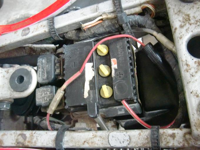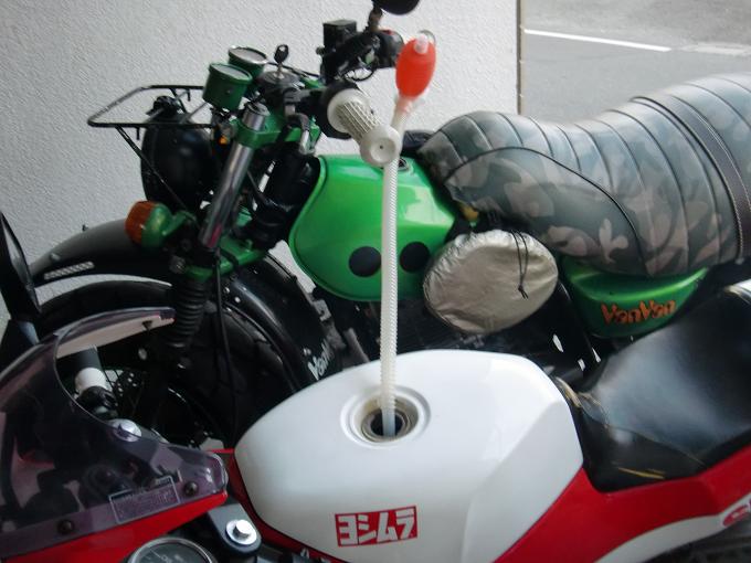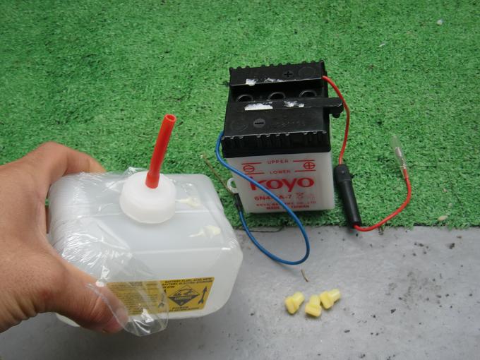 11月初めごろだったか。。。。 エンジン掛からない病に陥ってしまい、近距離はカマレオンが来たせいで、 夏は全く乗らなくガレージの物干し状態だったGAG号。 まずい、これはまずいぞ!ってことで、復活することに。 まぁ原因は検討ついてたんやけどね。 そう、バッテリーです。そもそもうちのGAGは最低限動く状態での引き渡し、ってかたち だった為、各部の消耗部品は新品にしたタイヤ以外は割りと一杯一杯な状態だったんよね。 バッテリーは空けて見ると、液は基準内だが、どうみてもボロイ。 これはいかんざき!ちゅーことで、ネットで早速注文。¥1980。安っw そういえば、開放型のバッテリー交換ってしたことなかったな、、、、と説明書片手に 早速交換開始。 このように、バッテリーと補充液が パーケージされております。 バッテリー上のシールを剥がして、 バッテリー右の空気穴の蓋を外す。 で、バッテリーの液を入れるところのねじを 3つとも外したら、液体を注入開始。 下限ラインまでは3箇所とも均等に入れていく。 最後は、下限~上限ラインの間まで注入して終了。 分かるかな? こんな感じ。 あとは一時間ほど時間を置いてから、 車体に取り付けるだけです。簡単簡単。 もともと付けてあったバッテリー、 ちなみに、バッテリーは付ける時は+から、外す時はーからです。 覚えにくい人はポスターに例えて覚えればいいっす。 ポスターの上側を+、下側をーとして、ポスターって 付ける時は上側から(+)、外す時は下側から(-)外すでしょ? こうして覚えておくのはお勧めです。 新品に付け替えると、電源ONでなんと、ウィンカーが点滅しております! 納車時から、エンジンかけないと点滅してなかったので、そういう仕様かと思ったら、 案の定、バッテリーが初めから弱ってたってわけねwプンスカ ウィンカーの点滅に狂喜乱舞した後に、 キックでエンジン始動しようとするが、なんか まだかかんないの。 なんとなく、ガス欠っぽい感じがしたので、バン子から お裾分けしてもらうw そしたら、あっさり掛かりましたw これからはGAGもたっぷり愛情かけて乗っていこうと心に誓う穏やかな秋の昼間でしたとさ。 PR